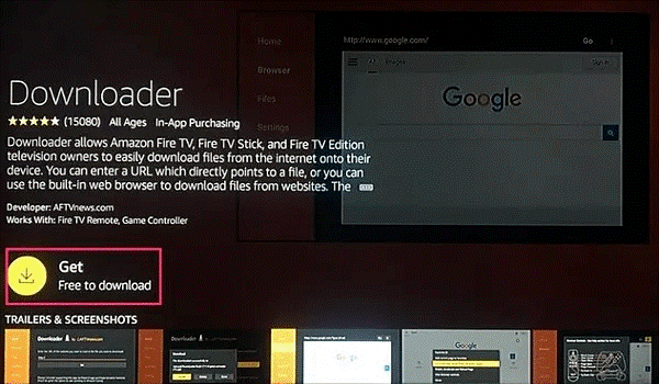 # 6 Cliquez sur le bouton Get. Avec cela, l’application Downloader télécharge et installe sur le Firestick.